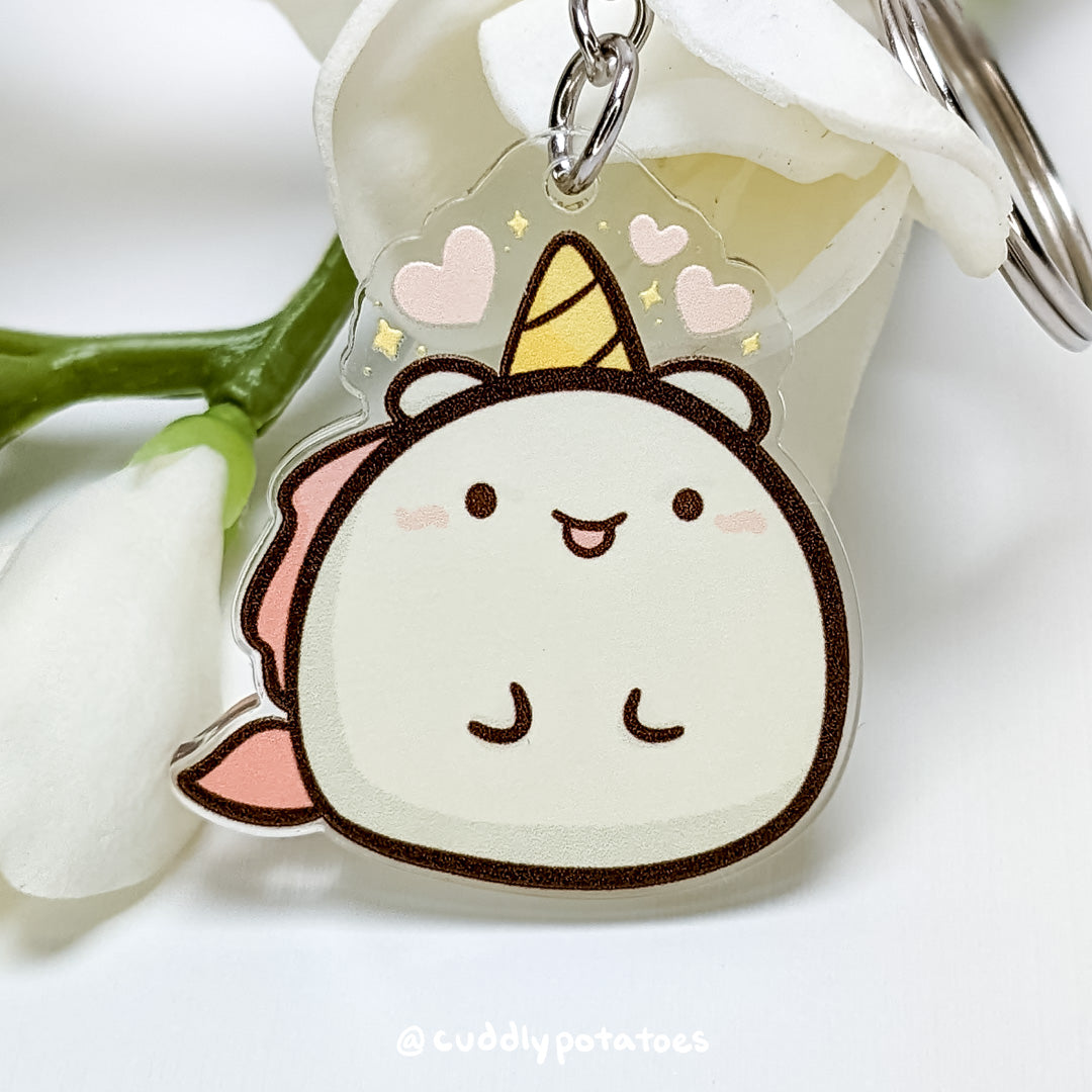 The "potatocorn" is a potato-shaped unicorn who loves you with all its squishy might! My hope is for it to accompany you through all your days and remind you to be kind to yourself, especially on the days when it feels impossible to, or when you can’t find the words. ❤